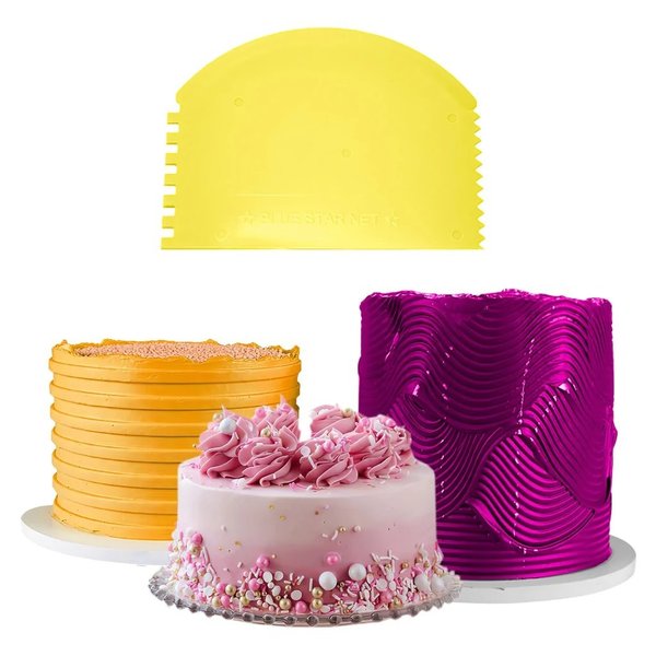 La espátula para modelar Blue Star amarilla de 4 funciones es la herramienta perfecta para los amantes de la repostería. Con sus cuatro funciones, es ideal para raspar, trabajar con fondant, dar forma a la masa y terminar con crema batida. Su forma de media luna se adapta perfectamente a tus manos, facilitando el trabajo manual y proporcionando mayor precisión en los detalles.