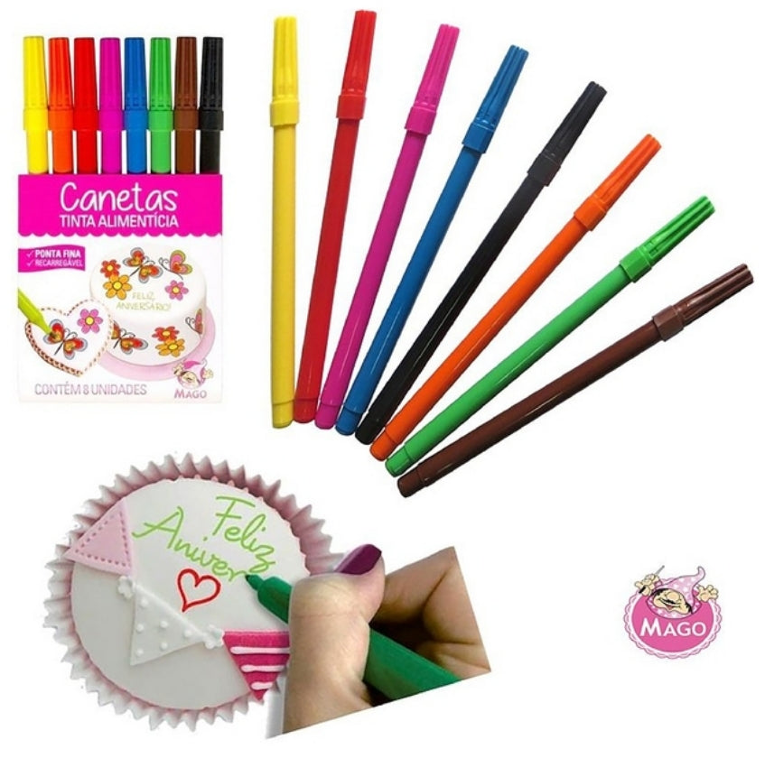 Lápices tipo fibra de tinta comestible. Ideal para decorar tortas, cupcakes, dulces, entre otros.